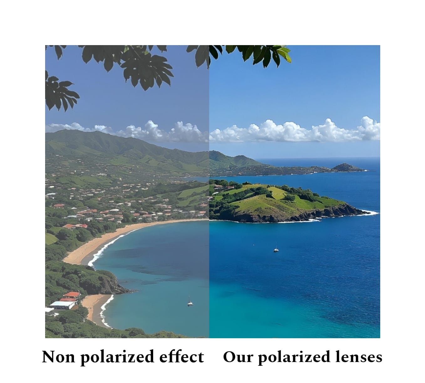 Our polarized lenses are designed to reduce glare, enhance color contrast, and provide unmatched visual comfort. Unlike non-polarized lenses, which may leave your vision washed out and fatigued, our lenses offer a vibrant and clear view of your surroundings. Whether you're driving, enjoying water sports, or simply soaking up the sun, experience the world in its true brilliance with our expertly crafted polarized lenses.